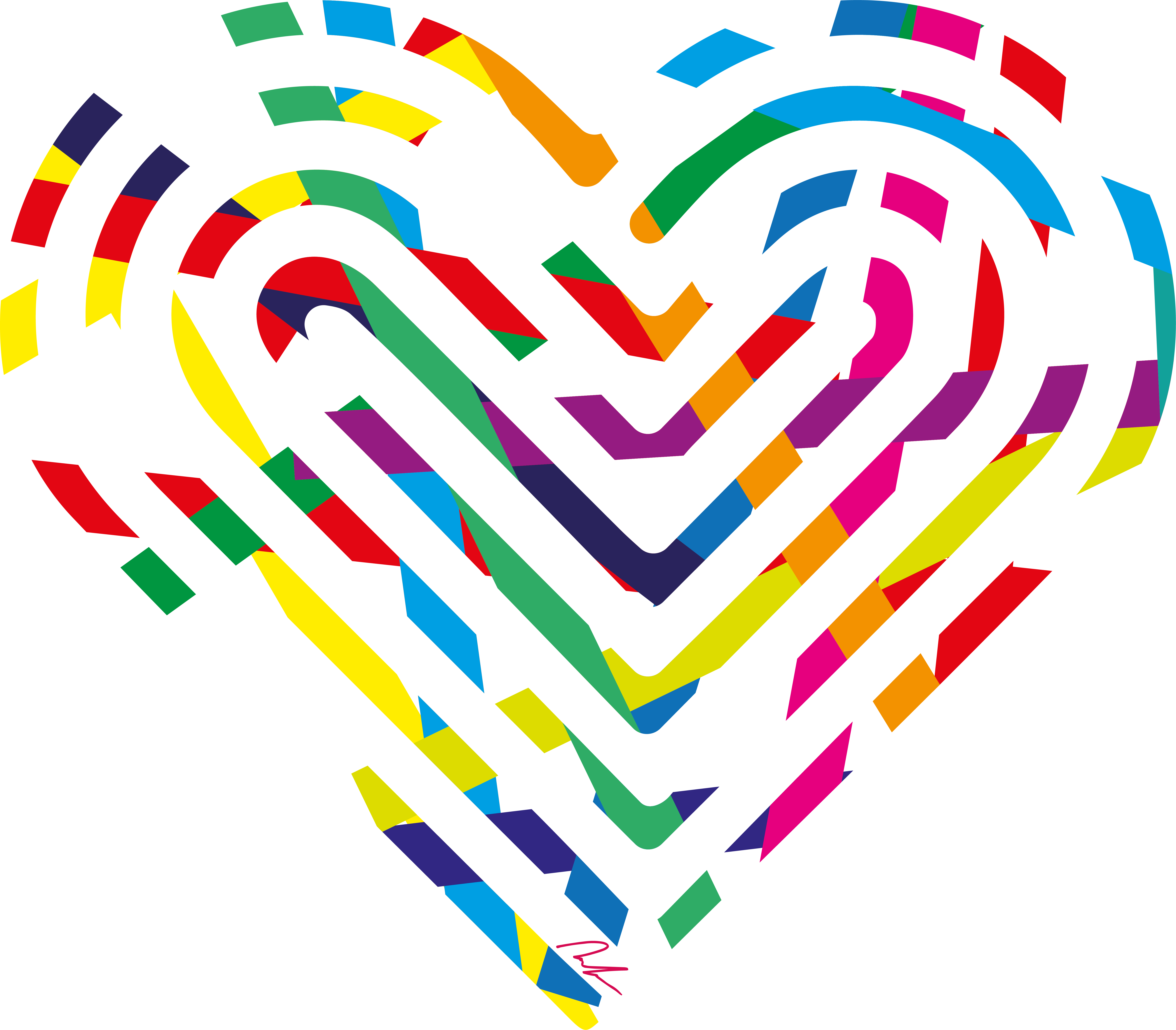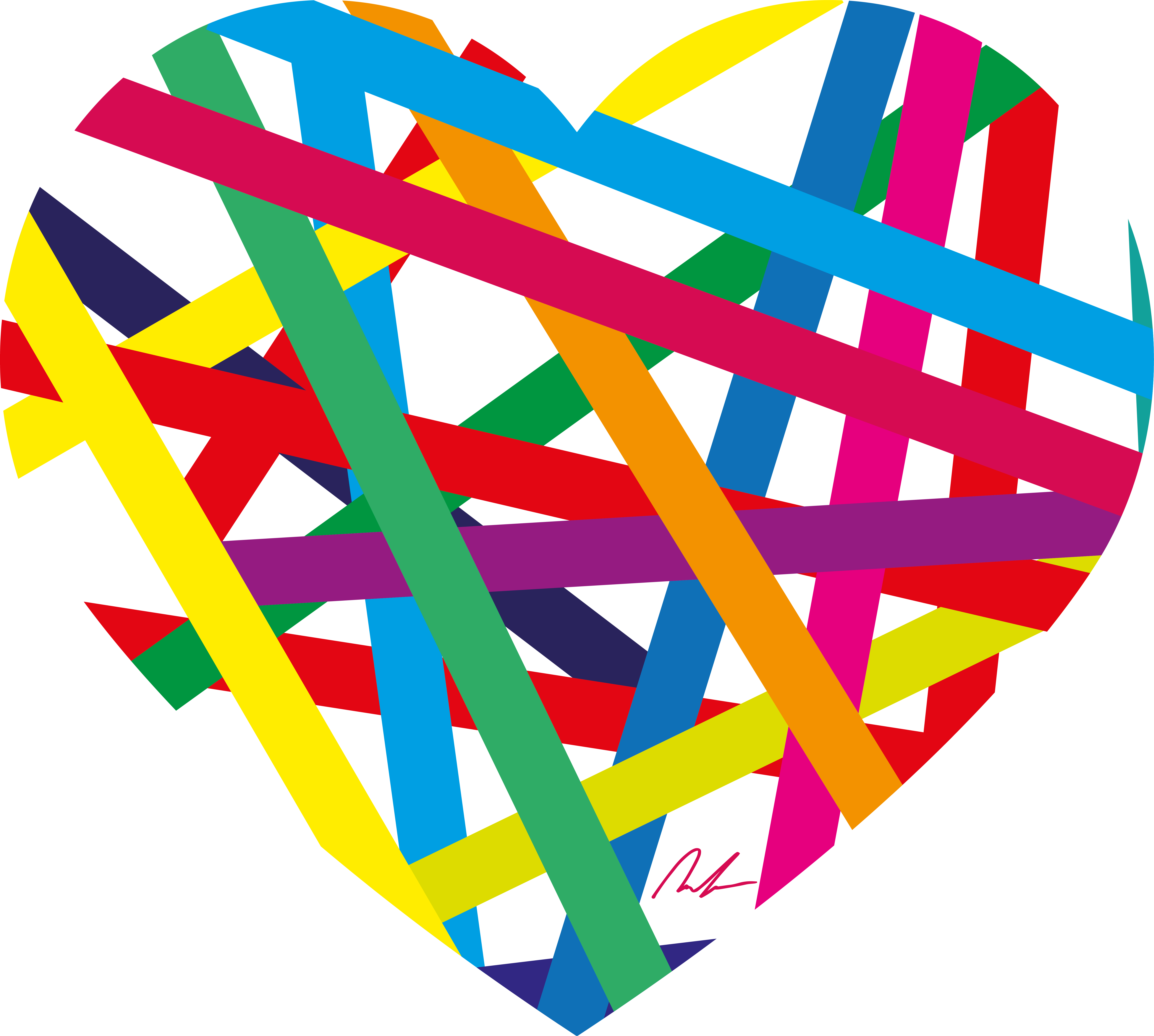This heart is composed of two principal elements, the continuous line and the intertwined colours.